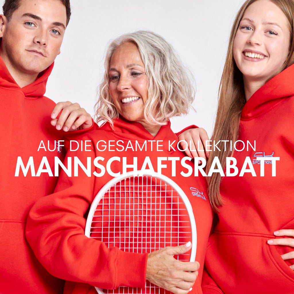 Jede Team-Bestellung über 750€ erhält von SPORTKIND attraktive Rabatte. Fordert einfach ein individuelles Mannschafts-Angebot an und profitiert von vergünstigten Preisen. In eurer Team-Anfrage könnt ihr bis zu drei Farben auswählen und aus allen Modellen unserer Teamwear-Kollektion schöpfen.